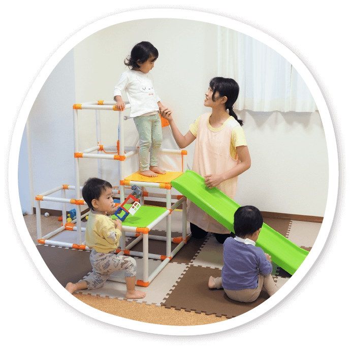 体温測定・子どものおむつ替え・午後おやつの準備・布団の片付け