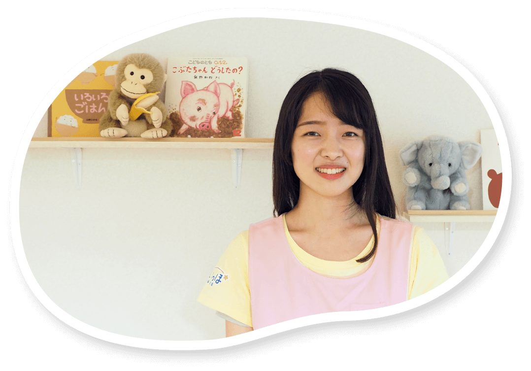 子どもの日々の成長に、やりがいや喜びを感じています。言葉がはっきりと出てきた時や食具の使い方、トイレで排泄が出来た時など、日を追うごとに様々なことがどんどん出来るようになり、思い返すことで嬉しさが込み上げてきます。また、出来たことを子どもたちと一緒に喜び合うことで、子どもたちの「出来た!」や「嬉しい!」という笑顔や感情も伝わってきます。子どもたちの日々の成長が私のやりがいです。